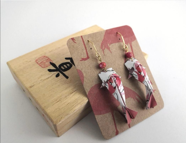 Produkthinweise: Das exakte Muster kann auf den Kois abweichen, je nach Faltung des gemusterten Papiers. Materialien: Origamipapier, handgefalten. 2fach versiegelt mit seidenmattem hautfreundlichem Lack. Spritzwasser und Regenwasserfest. Ohrhaken aus chirurgischem Edelstahl316 mit 18Karat Echtgold vergoldet.