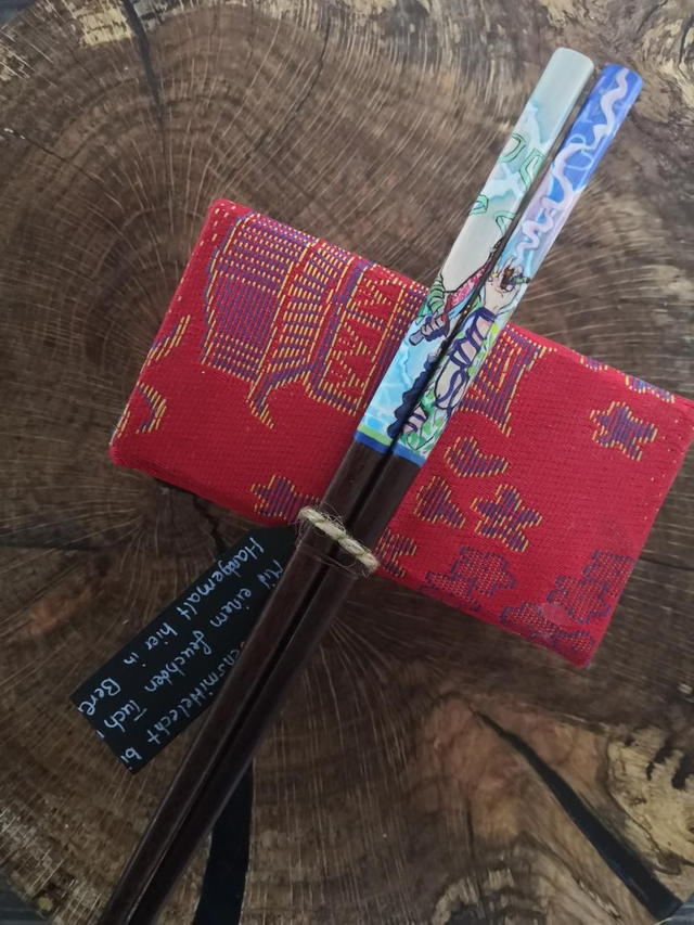 Chopsticks: Holz, Kunststoffbeschichtet, handbemalt. Schutzlackiert.